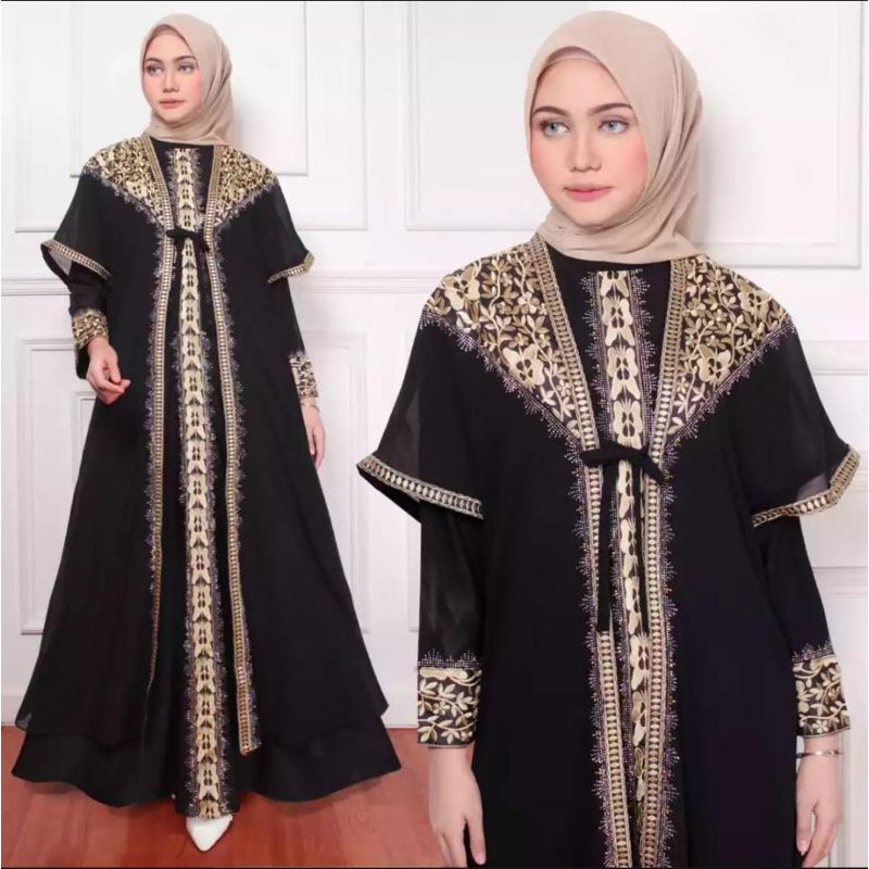 New Abaya Gamis Maxi Dress Arab Saudi Bordir 255 Turki Umroh Dubai Turkey India Wanita Hitam Shopee Indonesia