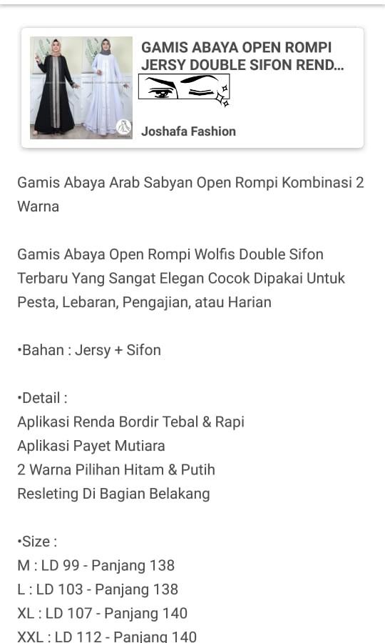 Harga Spesifikasi Farisa Olshop Baju Gamis Abaya Turkey 399 Putih Abaya Arab Hitam Remaja Turki Turky Busana Muslim Wanita Arabian Terbaru Jumbo 2020 Gamis Elzatta Arab Mewah Terbaru Dan Perbandingan Toko Harga Indonesia