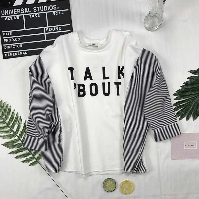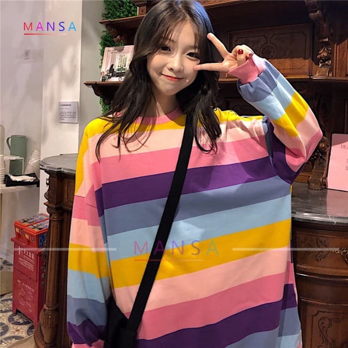 Jual Kaos Lengan Panjang Gaya Korea Wanita Kombinasi Salur Jfashion Murni Online Februari 2021 Blibli