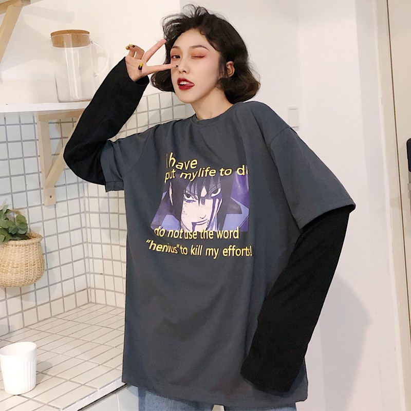 T Shirt Lengan Panjang Wanita Korea Atasan Dicetak Kartun Longgar Kaos Shopee Indonesia