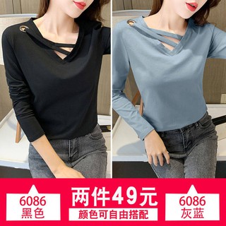 Attack On Titan Baju Kemeja Lengan Panjang Warna Murni 2020 Versi Korea Yang Baru Bergaya Slim Dalam Dan Luar Memakai T Shirt Wanita Musim Gugur Pakaian Gaya Barat Shopee Malaysia