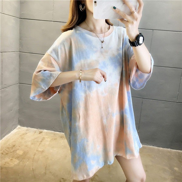 Ins Lengan Pendek Baju Kaos Wanita Musim Panas 2020 Model Baru Versi Besar Longgar Gaya Korea Warna Polos Model Setengah Panjang Netral Lengan Pendek Murid Atas Kaos Wanita Gaya Korea Wanita