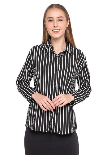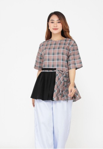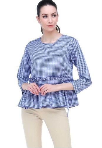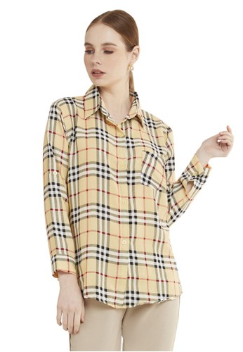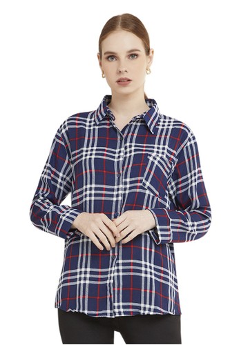 Jual Evernoon Osvald Blouse Long Sleeve Motif Kotak Kotak Atasan Baju Wanita Casual Hitam Original Zalora Indonesia