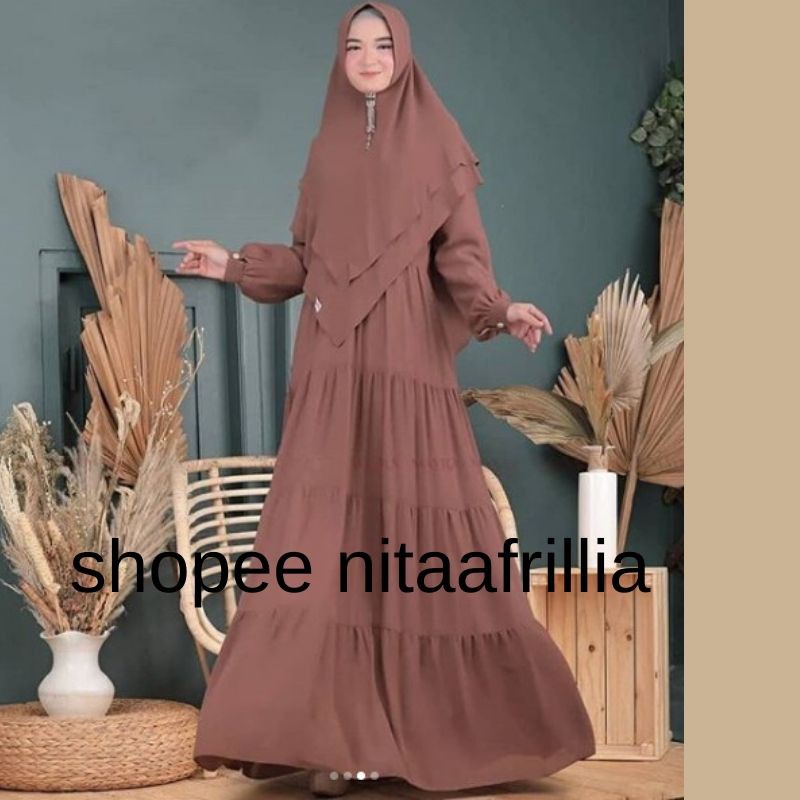 Gamis Syari Balqis Ceruti Full Impor Set Khimar Polos Busana Muslim Wanita Motif Bunga Terbaru Shopee Indonesia