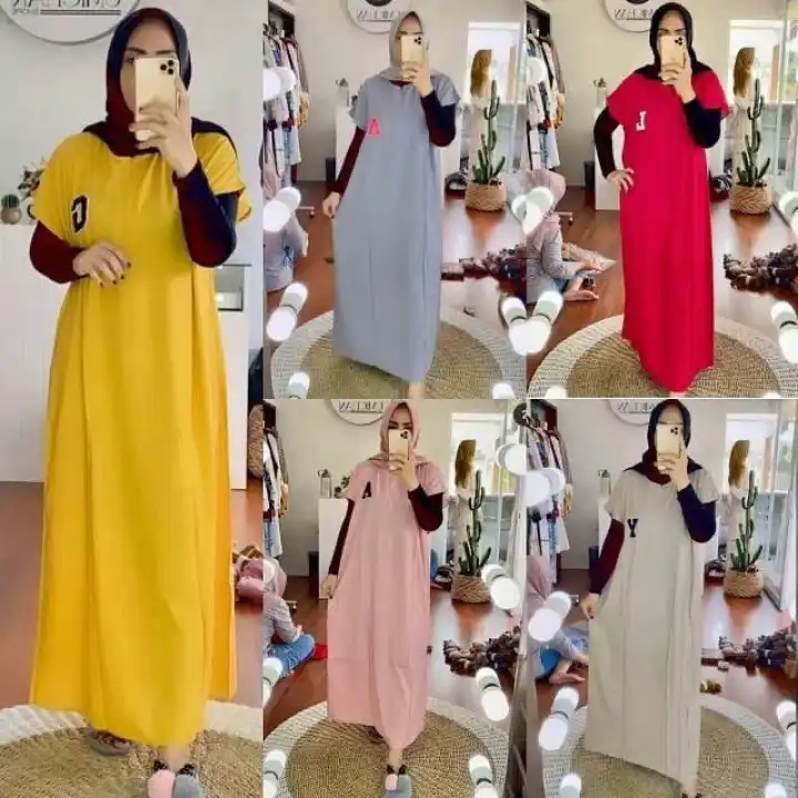 Baju Muslim Untuk Wanita Dewasa Model Gamis Terbaru Merk Oka Oke Dengan Bahan Kaos Kombinasi Katun Halus Berkualitas Bagus Dan Harga Mu Baju Muslim Kaos Wanita