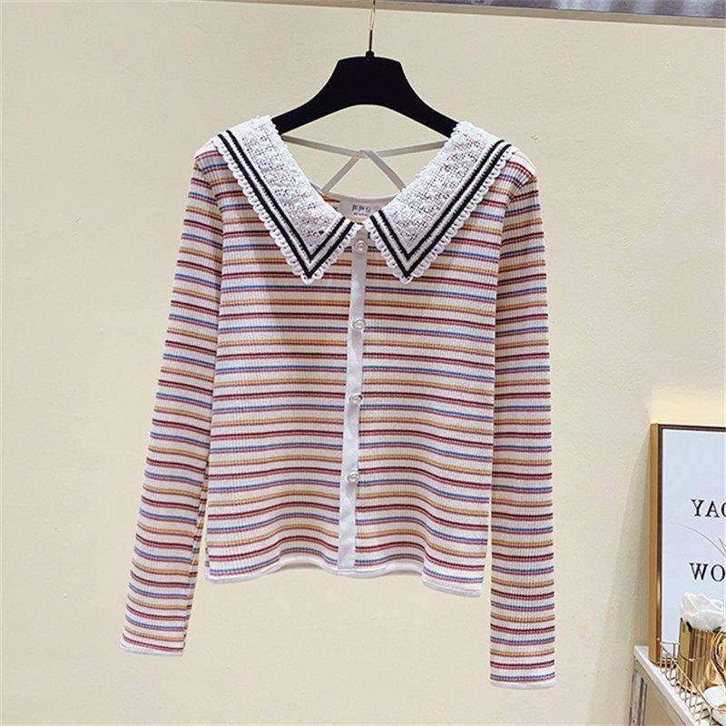 Baju Perempuan Tunic Blouse 2020 Musim Luruh Baru Baju Wanita Bergaris T Shirt Lengan Panjang Gaya Asing Boneka Kerah Kemeja Kemeja Bawah Atas Shopee Malaysia