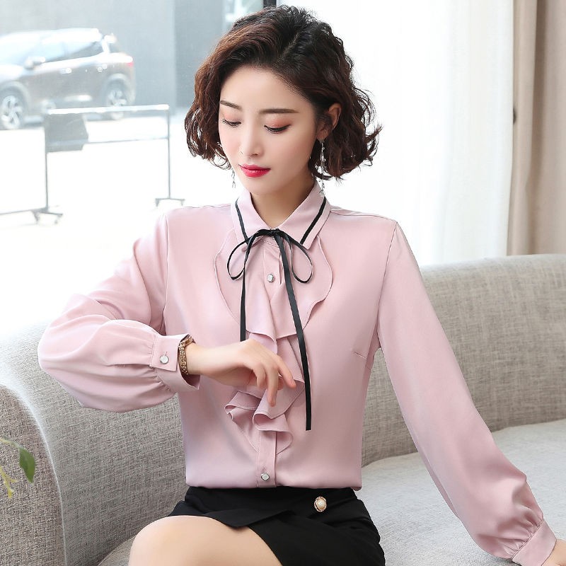 Kemeja Fashion Atasan Korea 2020 Baru Lengan Panjang Blusa Blus Wanita Kantor Kemeja Sifon Poliester Garis Kerah Wanita Atasan 800b Blus Dan Kemeja Aliexpress