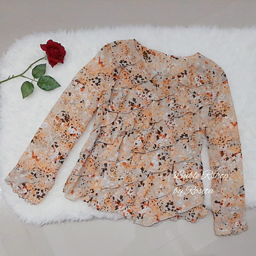 Real Pict Blouse Atasan Kemeja Korea Baju Kerja Kuliah Wanita Lengan Panjang Ruffle Motif Abstrak Bohemian Orange Bintik Bintik Fesyen Wanita Pakaian Wanita Atasan Di Carousell