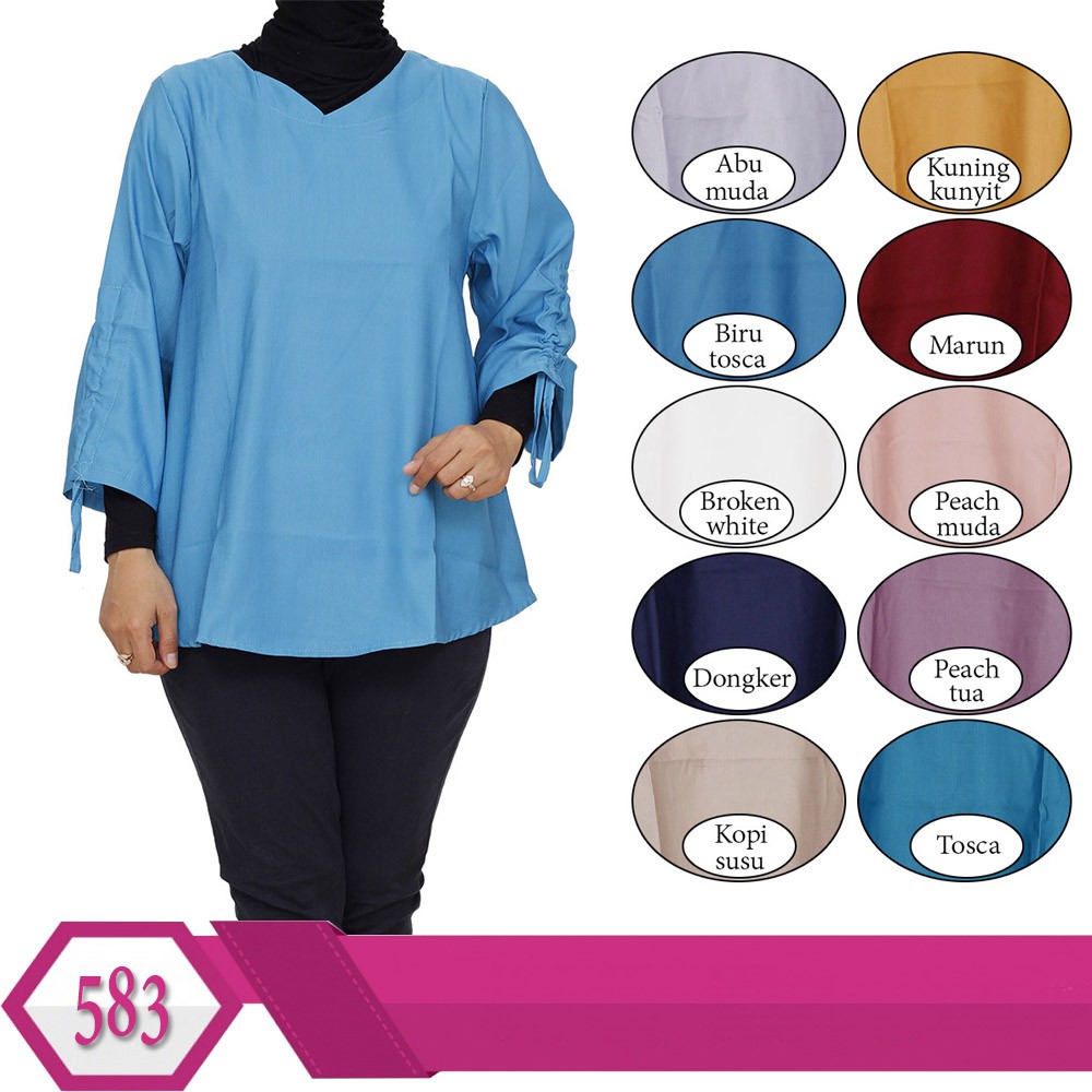 Jual New Baju Atasan Wanita Blus Muslim Motif Polos Bahan Katun Resleting Tambora Winatiana Shop Tokopedia