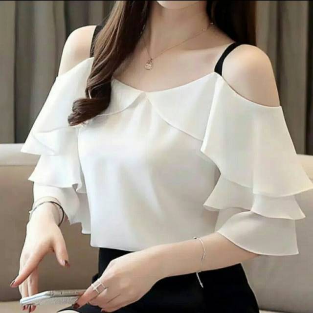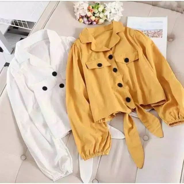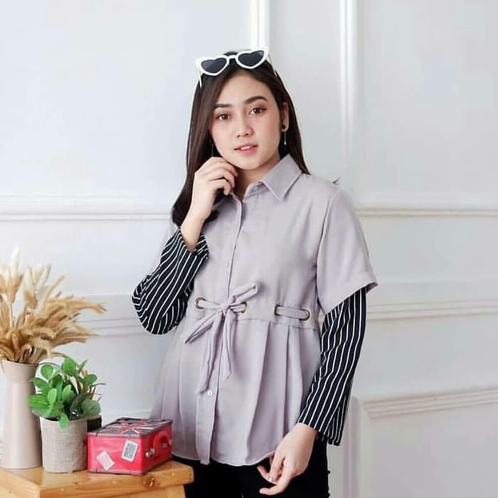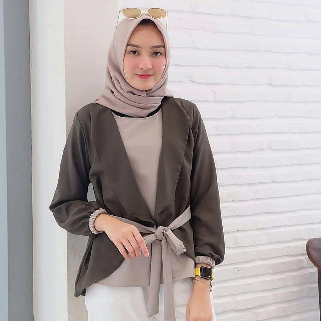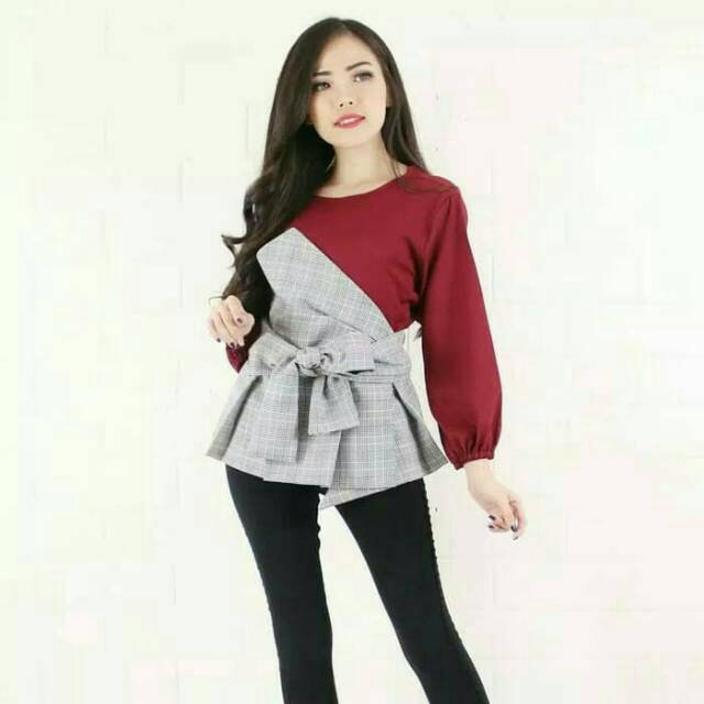 Promo Termurah Brenda Top Blouse Atasan Wanita Twotone Tali Pinggang Polos Baju Muslim Lebaran Modis Shopee Indonesia
