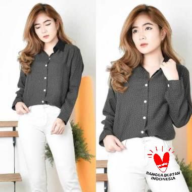 Jual Istre Kemeja Wanita Lengan Panjang Motif Retro Vintage Original Black Pendek Hitam Istre Official Store