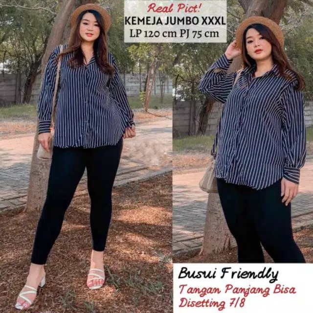 Atasan Baju Jumbo Wanita Big Size Hijab Lengan Panjang Kekinian Model Cardi Garis Garis Stripe Shopee Indonesia