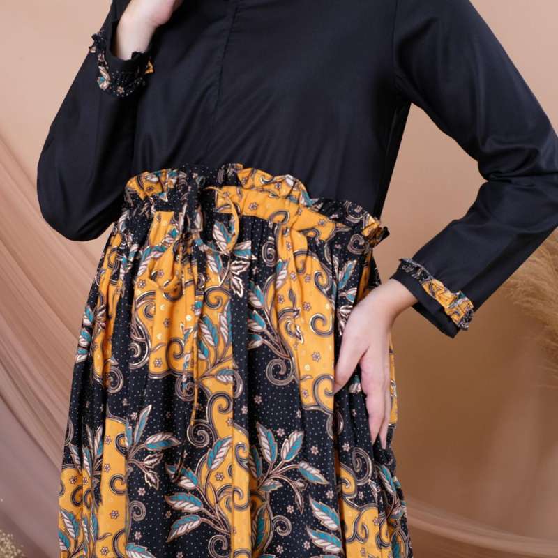 Busana Batik Gamis Hitam Bawahan Motif Trendy Dan Modern Baju Batik Panjang Desain Masa Kini Yang Lebih Fashionable Untuk Perempuan Berhijab G1856bt M Toko Batik Online 2021