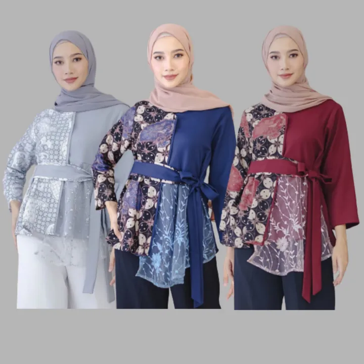 Bisa Cod Atasan Batik Wanita Kantor Baju Batik Kombinasi 3 Bahan Mostcrepe Tile Mutiara Batik Modern Masa Kini Terbaru Blus Batik Wanita Lengan Panjang Modern Remaja Kemeja Kerja Seragam Kemeja Batik Wanita
