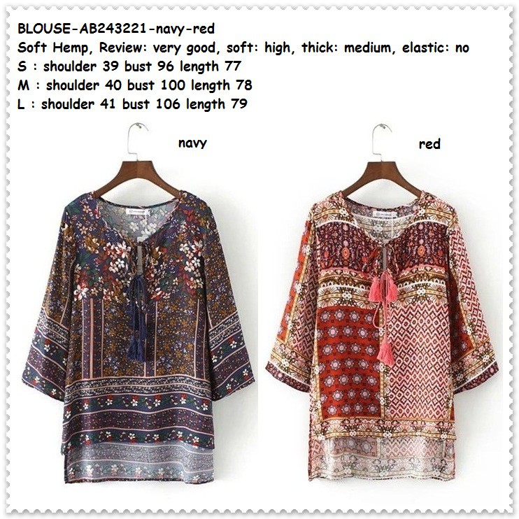 Baju Boho Bohemian Etnik Vintage Lengan Panjang Blouse Korea Import Red Blue Pakaian Wanita Shopee Indonesia