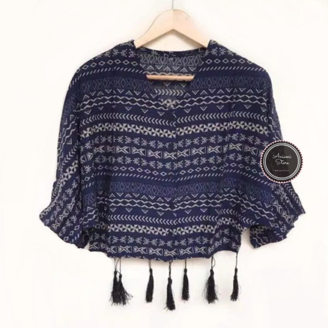 Baju Boho Bohemian Tunik Blouse Wanita Korea Import Navy White Putih Terbaru 2018 Ame401 Elevenia