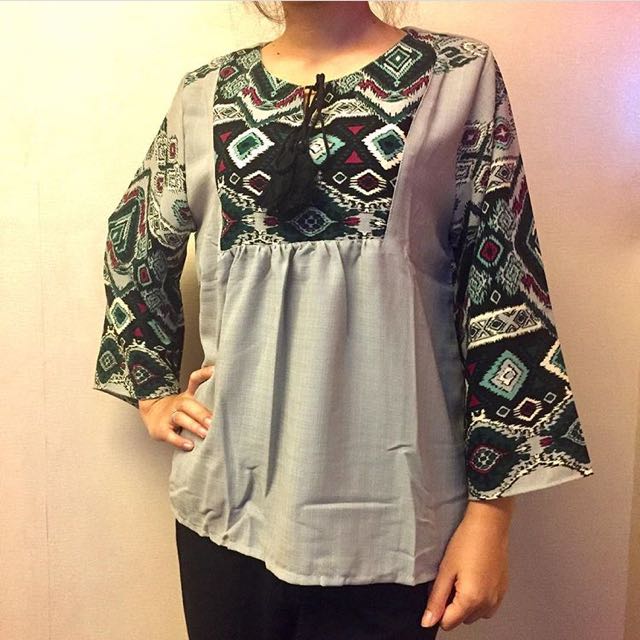 100 000 Dapat 3pcs Baju Blouse Kemeja Kaos Atasan Hijab Boho Top Bohemian Fesyen Wanita Pakaian Wanita Atasan Di Carousell