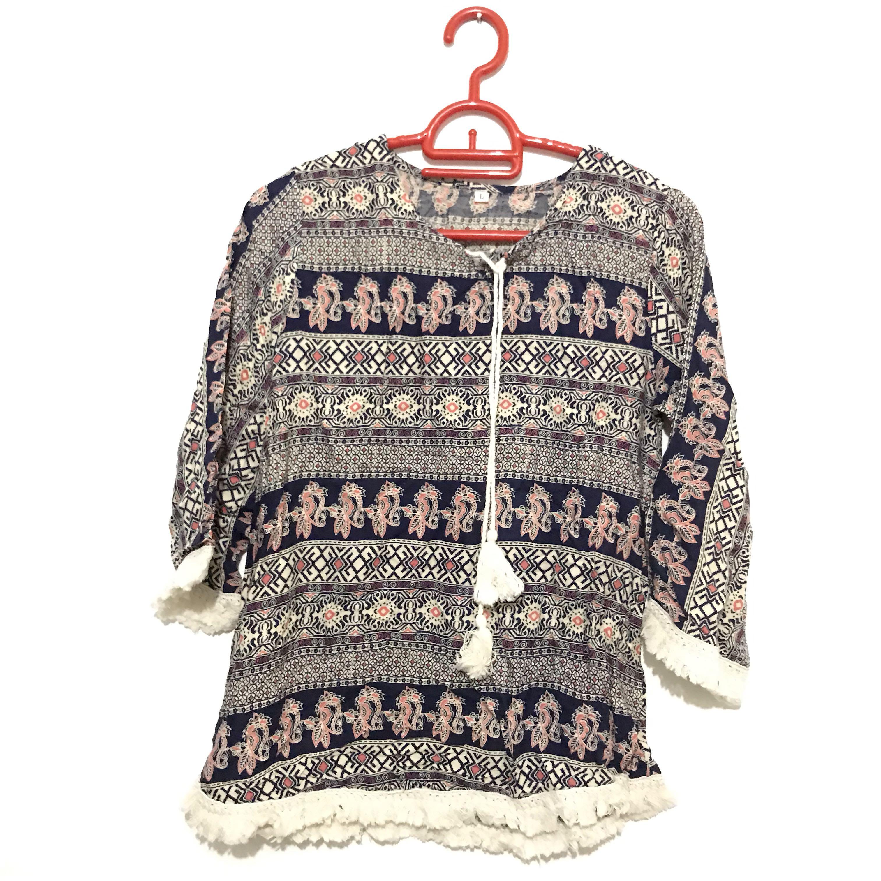 Preld Baju Blouse Motif Bohemian Boho Vintage Korean Summer Tropical Retro Casual Atasan Top Kab Indramayu Jualo