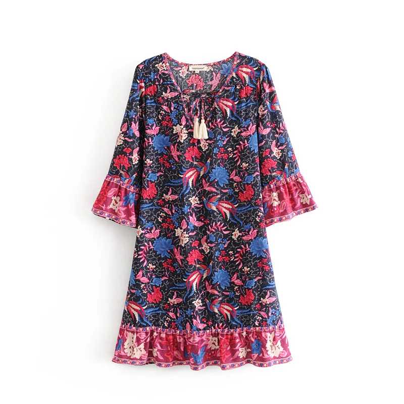 Baju Wanita Desain Baru Musim Panas Pakaian Musim Panas Wanita Baju Bohemian Motif Bunga Dan Phoenix Lengan Flare Leher V Baru Buy Gaun Bohemian Wanita Bohemian Gaun Bohemian Gaun Pakaian Wanita Product On Alibaba Com