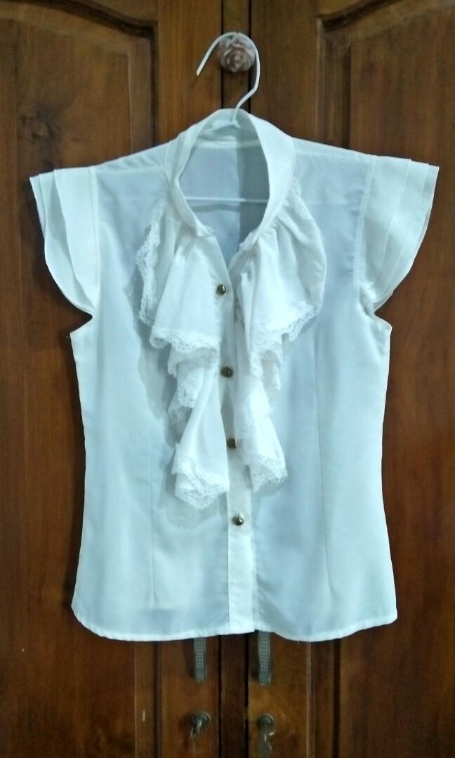 Penawaran Terbaik Untuk Musim Semi Dan Musim Gugur Model Baru Gaya Korea Kerah Berdiri Lampion Lengan Panjang Katun Kemeja Putih Membentuk Tubuh Terlihat Langsing Pinggir Berenda Baju Dalaman Gaya Barat Wanita Dari
