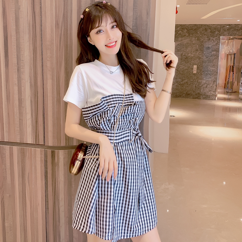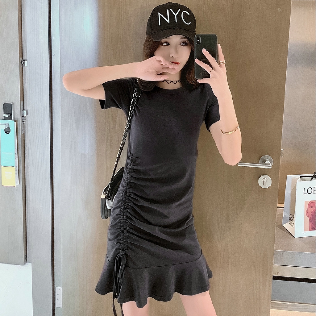 Baju Perempuan Women Dress Gaun Baru 2020 Musim Panas Gaun Korea Pertengahan Baru Xia Slim Adalah Gaun Lengan Pendek Wanita Nipis Shopee Malaysia