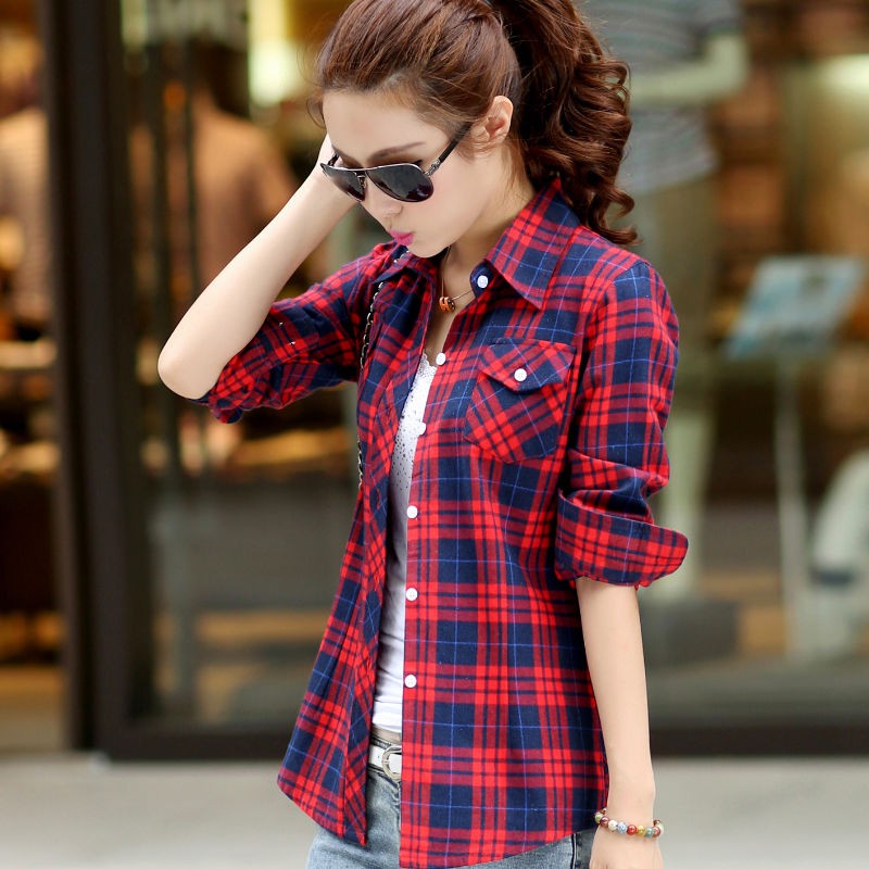 Fashion Baju Kemeja Kotak Kotak Wanita Kemeja Lengan Panjang Wanita Katun Musim Luruh Wanita 2020 Baju Musim Luruh Baru Baju Kemeja Bawah Shopee Malaysia