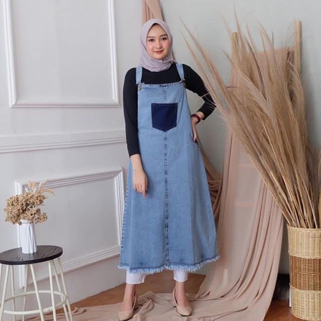 Plain Overall Cod Overall Jeans Dress Baju Muslim Wanita Muslimah Gamis Cantik Casual Overall Gaul Trendy Feminim Modis Terbaru 2019 Overall Modis Overall Fashion Overall
