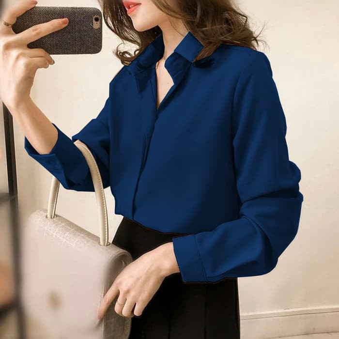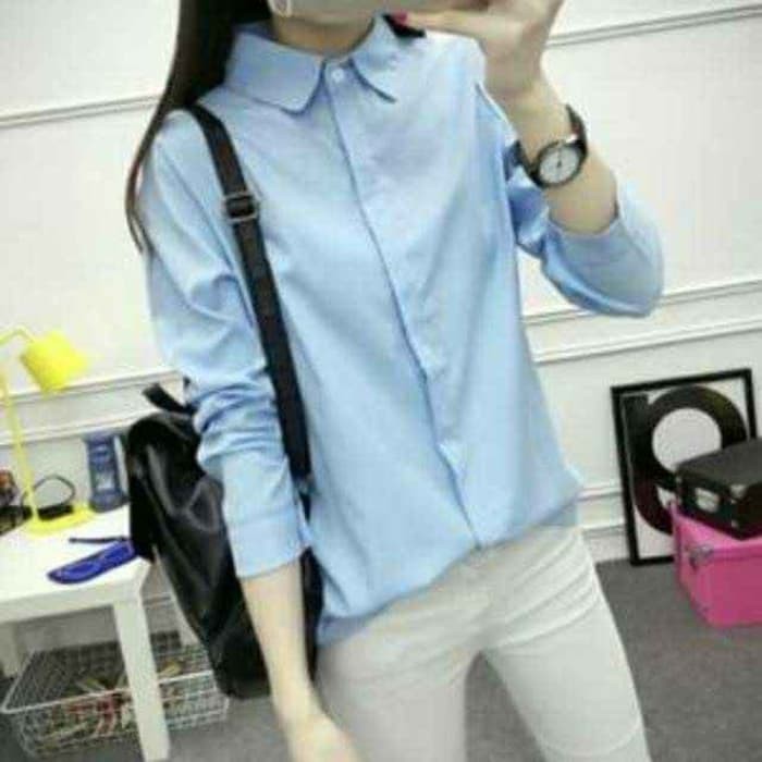 Baju Cewek Kemeja Murah Atasan Wanita Kemeja Fashion Remaja I Xw227 Formal Lengan Panjang Biru Mu Shopee Indonesia