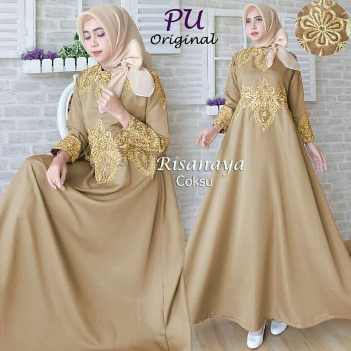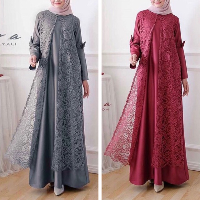 Model Baju Gamis Brokat Pesta Muslim Terbaru Di Tahun 2019 2029 Maxi Tahalea Permata Abuabu G 30icc Shopee Indonesia