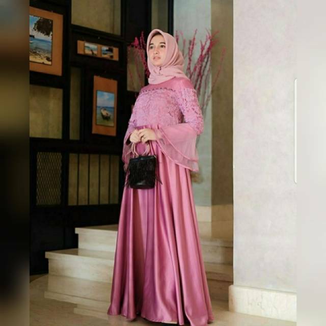 Termurah Baju Gamis Gaun Pesta Muslim Wisuda Brokat Brukat Kombinasi Polos Sekar Warna Dusty Shopee Indonesia