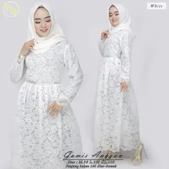 Dress Muslim Putih Gamis Brokat Putih Dress Muslim Putih Jumbo Dress Putih Brukat Murah Shopee Indonesia