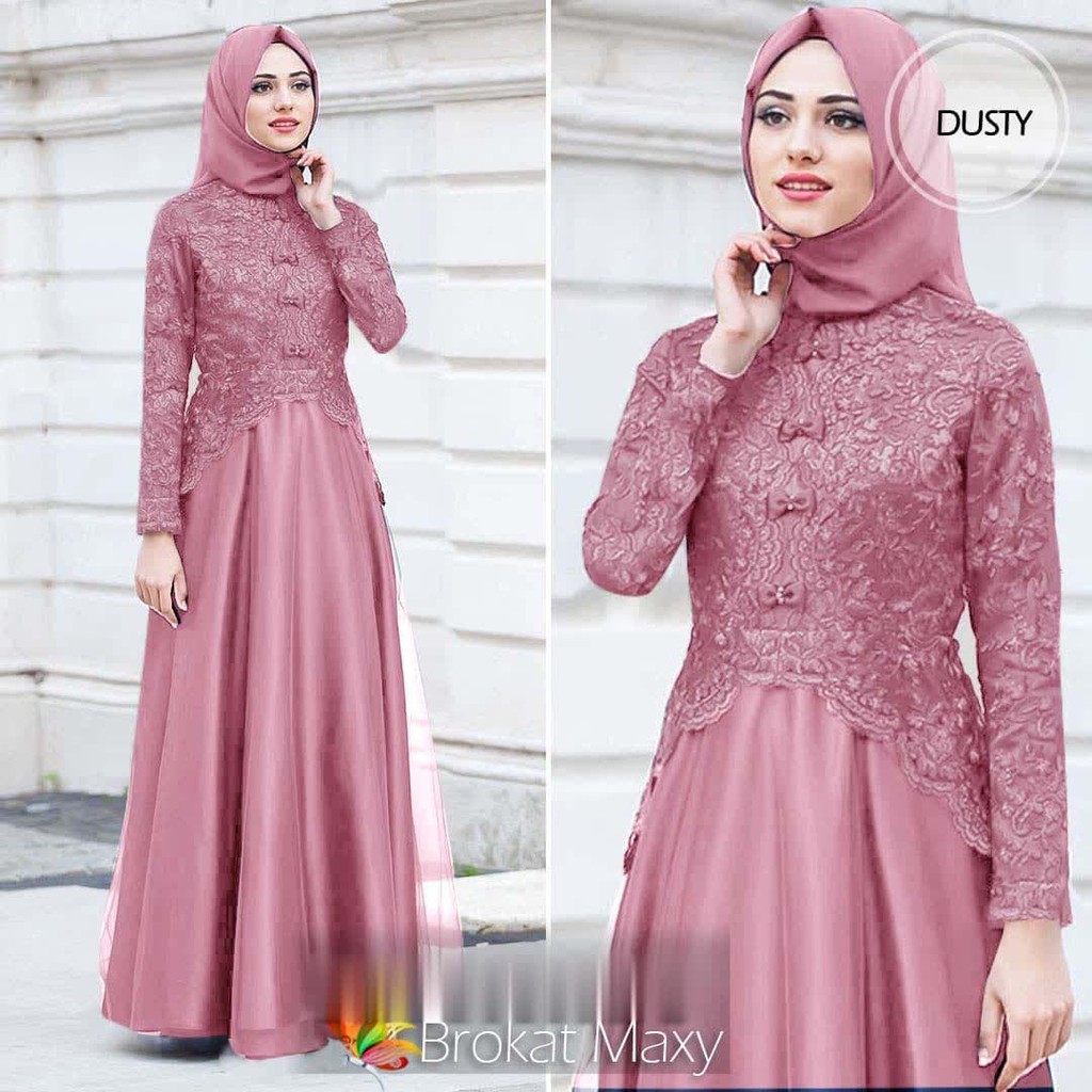 Baju Gamis Wanita Terbaru Gamis Pesta Brukat Dusty Pink Maxi Medusa Busana Muslim Wanita Baju Muslim Perlengkapan Sholat Fashion Wanita Bukalapak Com Inkuiri Com