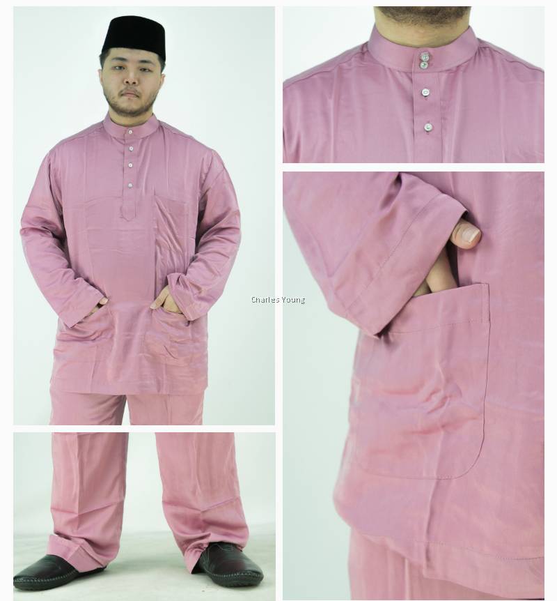 Cy 001a Baju Melayu Muslim Dewasa Black Dusty Pink Olive Green Navy Blue Cornflower Blue