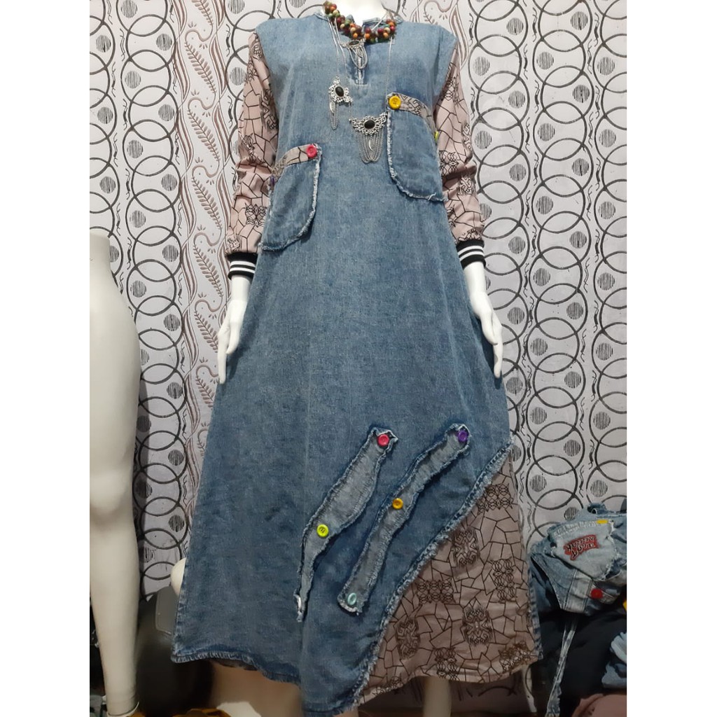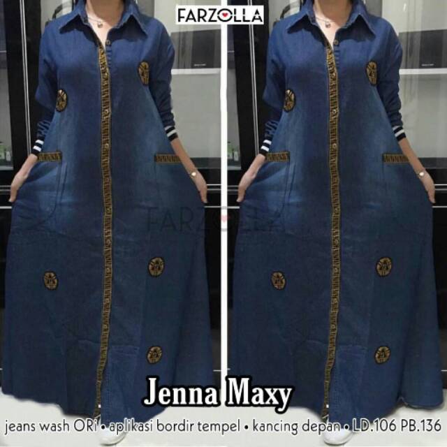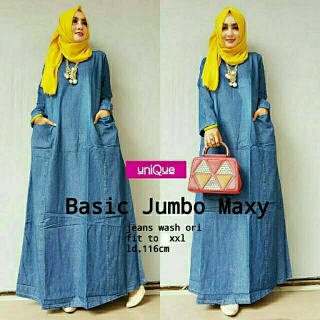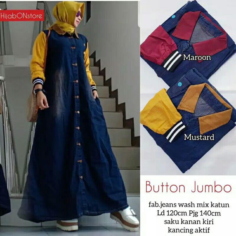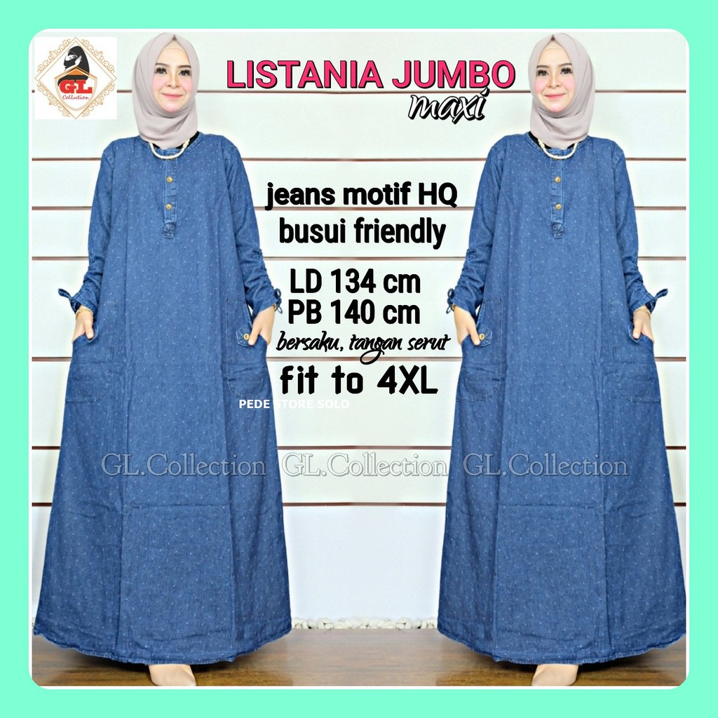 Ld 134 Jumbo Gamis Jeans Listania Jumbo Baju Gamis Jeans Wash Motif Hq Kancing Aktif Shopee Indonesia
