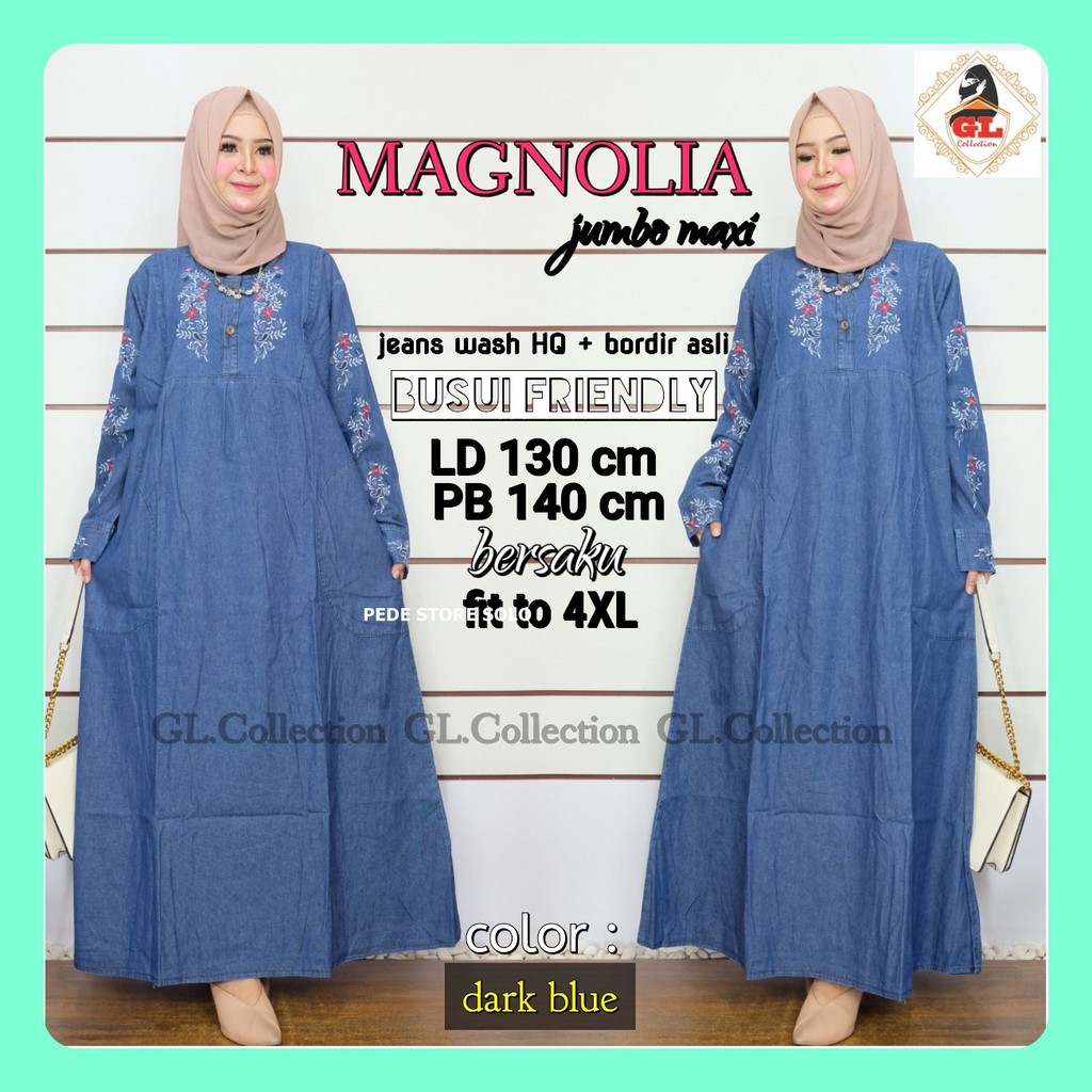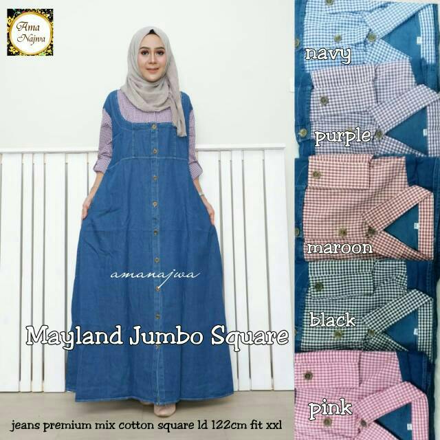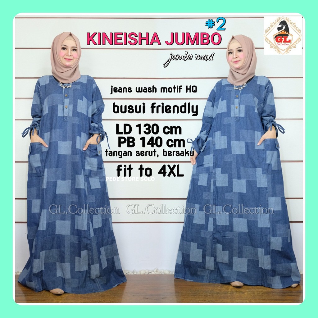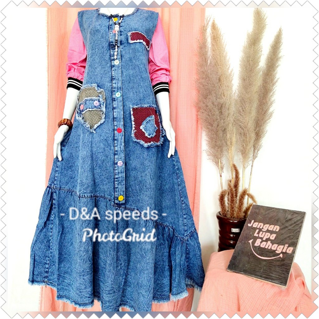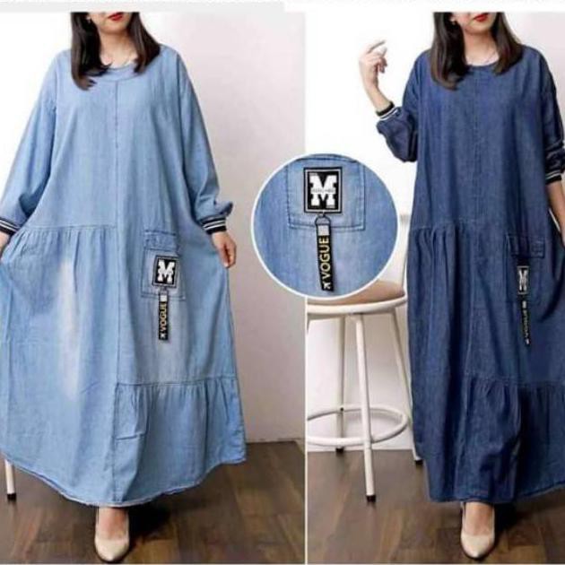 Ld 134 Jumbo Gamis Jeans Listania Jumbo Baju Gamis Jeans Wash Motif Hq Kancing Aktif Shopee Indonesia