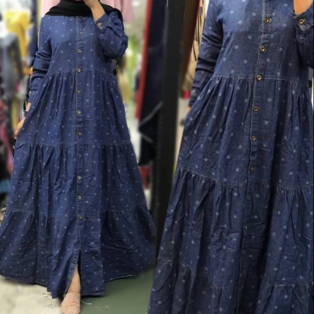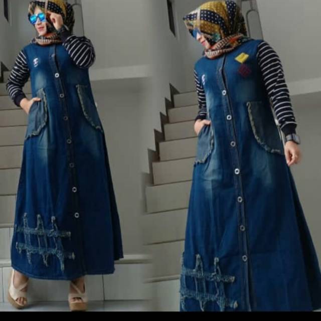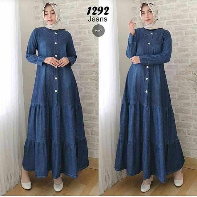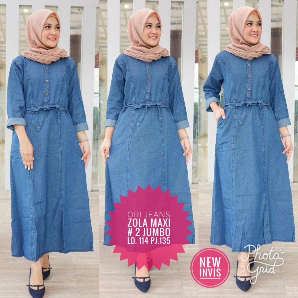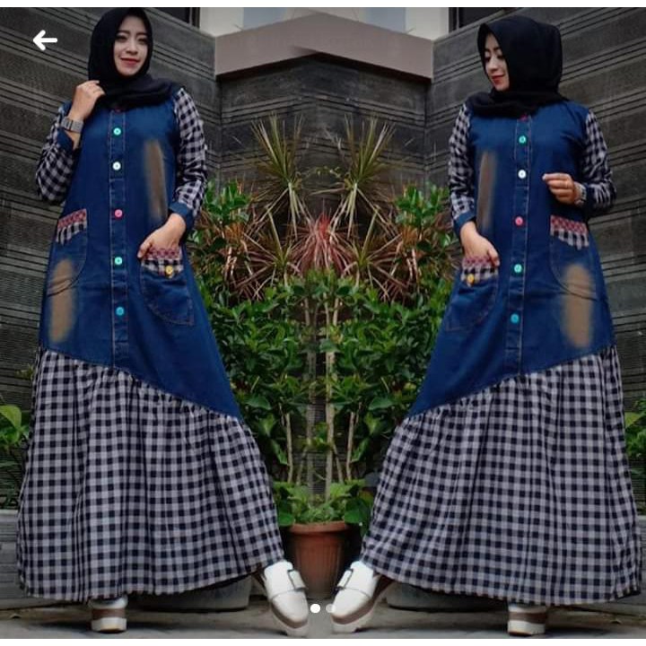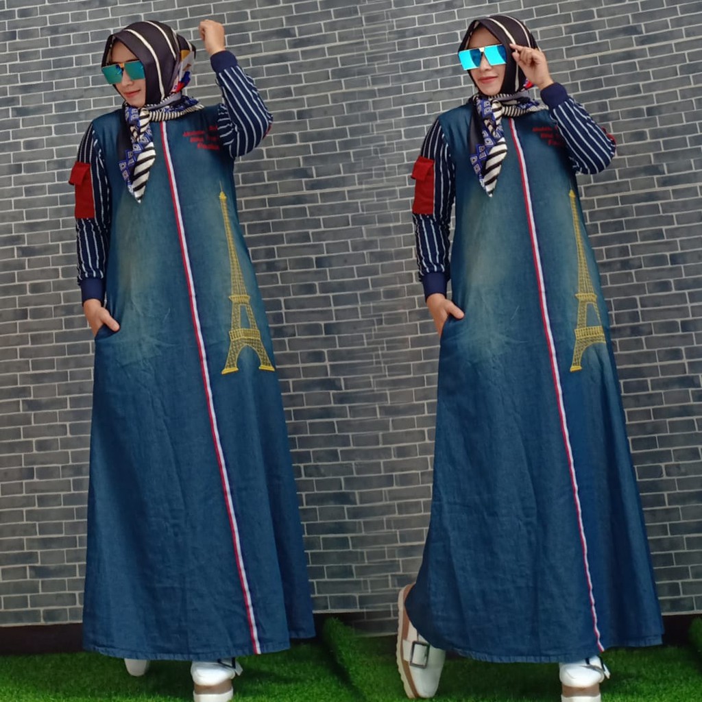 Gamis Jeans Dress Baju Muslim Pakaian Wanita Model Terbaru London Maxi Shopee Indonesia