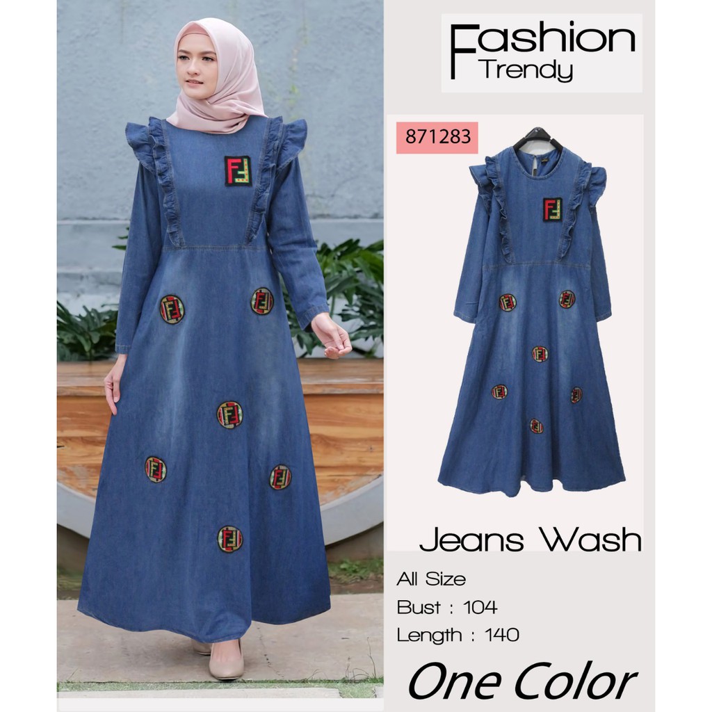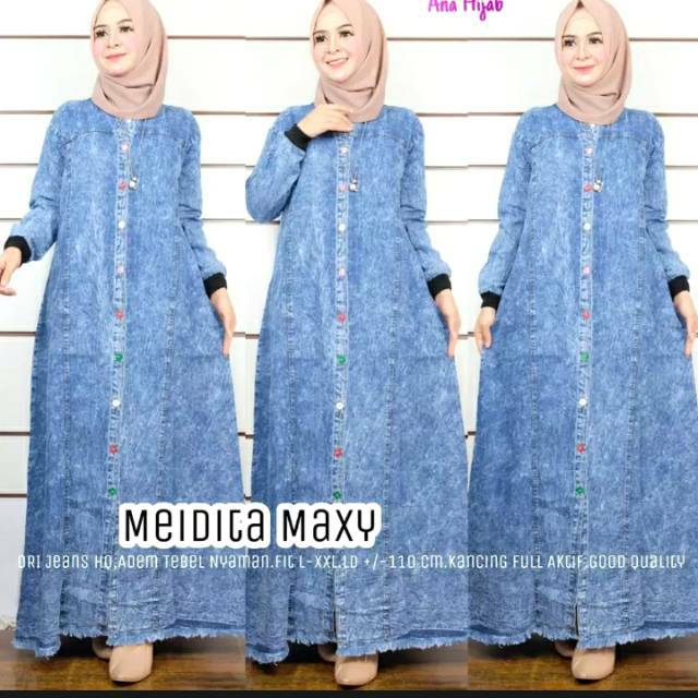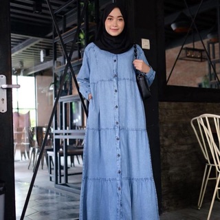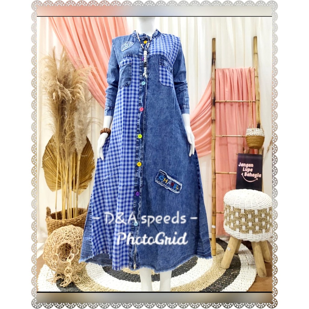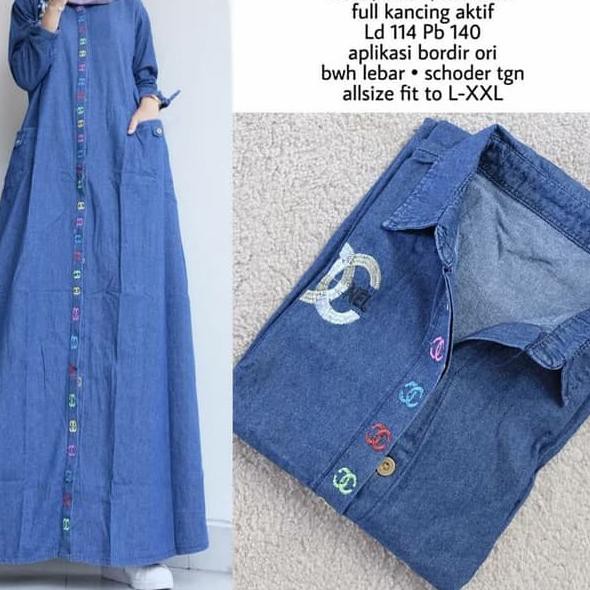 Gamis Jeans Wash Tebal Impor Chanel Maxi Jeans Promo Chika Maxijean Jeans Gamisjeans Gamislevis Shopee Indonesia