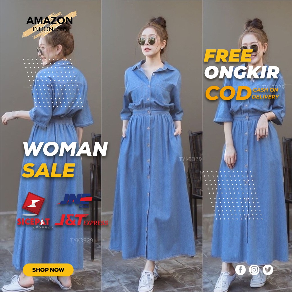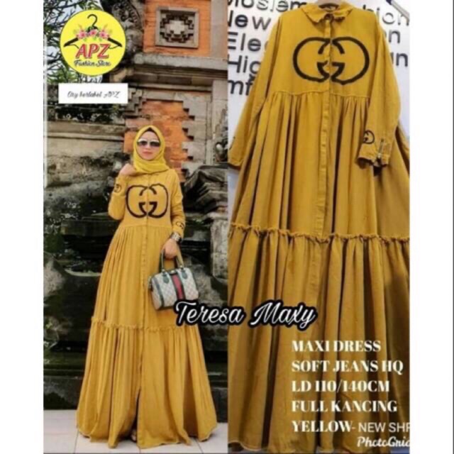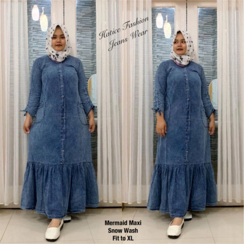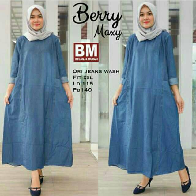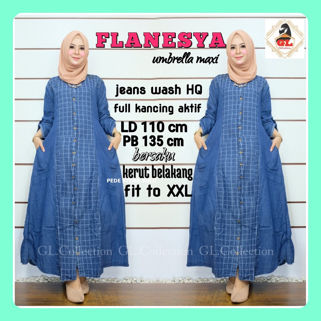 Gamis Jeans Wash Tebal Impor Chanel Maxi Jeans Promo Chika Maxijean Jeans Gamisjeans Gamislevis Shopee Indonesia