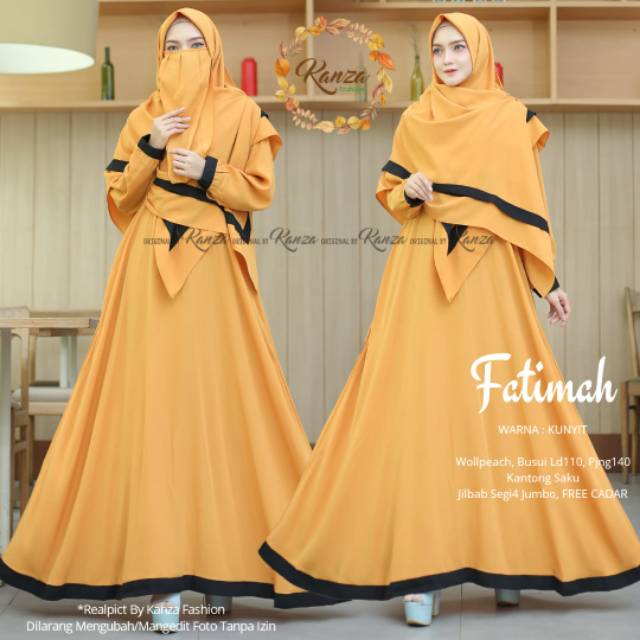 Gamis Syari Polos Fatimah Kuning Kunyit Ori Kanza Set Jilbab Wolfis Polos Segi 4 Free Cadar Shopee Indonesia