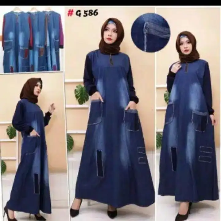 Gamis Jeans Kombinasi Gamis Levis Mix Gamis Jeans Gamis Murah Gamis Wanita Gamis Muslim Wanita Lazada Indonesia