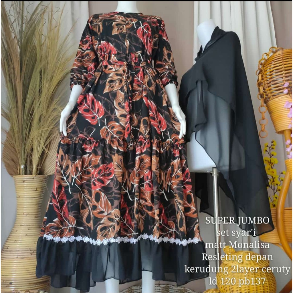 Gamis Set Hijab 2 Layer Trend Gamis Motif Janda Bolong Matt Monalisa Ceruty Shopee Indonesia