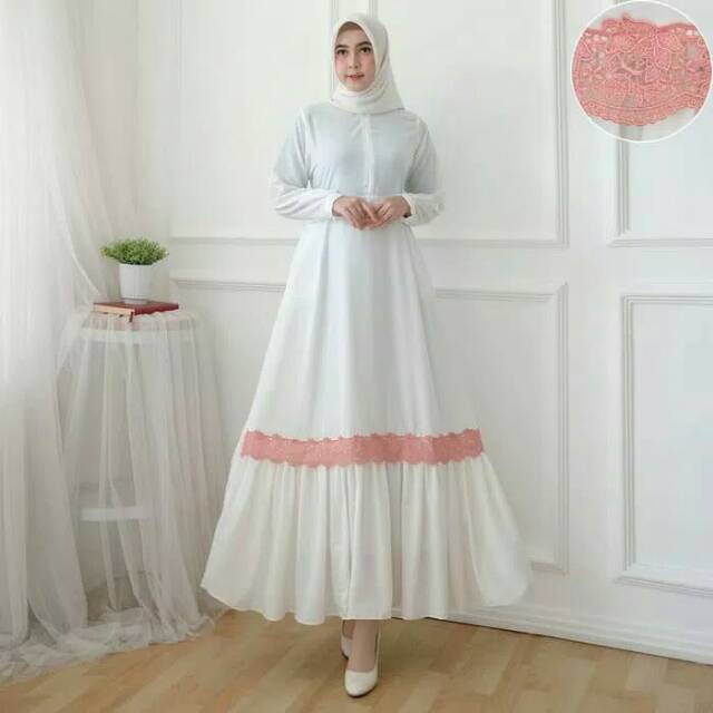 Baju Gamis Syari Wanita Terbaru Lucia Dress White Putih Murah Gamis Dress Baju Syari Gamis Murah Shopee Indonesia