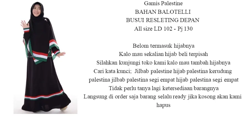 Baju Gamis Palestina Warna Putih Gambar Hijab
