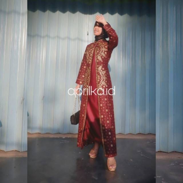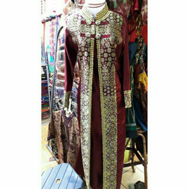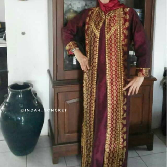Gamis Songket Palembang Matahari Red Bisa Couple Baju Pesta Baju Kondangan Baju Kebaya Batik Shopee Indonesia