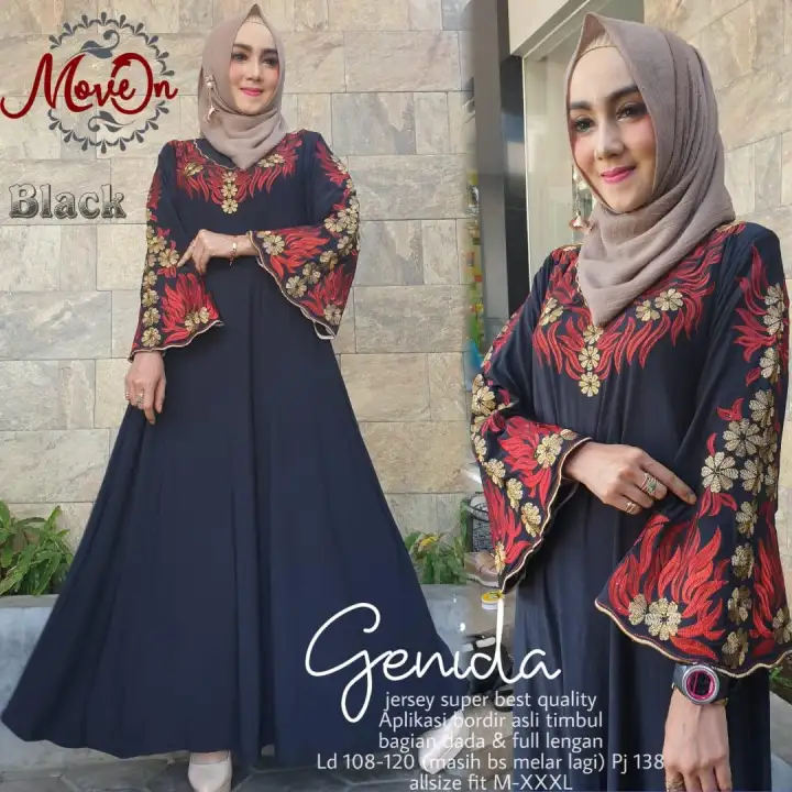Jual Terbaru Rn Gamis Arabian Bordir Gamis Syari Hitam Modis Gaun Pesta Mewah Cantik Elegan Umroh Haji Maxi Dress Hijab Baju Muslim Di Lapak Arina Store Bukalapak
