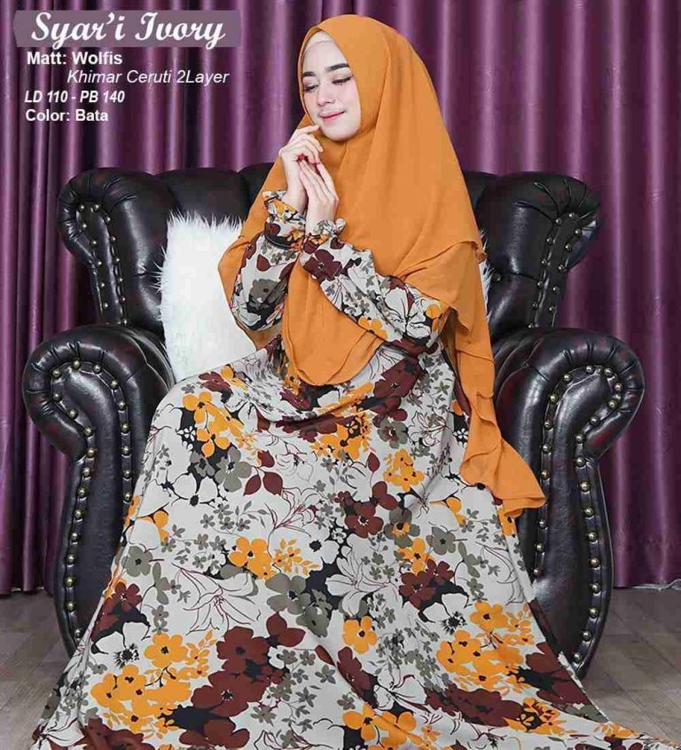 Model Baju Gamis Syar I Lyra Virna Modern Motif Bunga Light Grey Model Baju Wanita Model Pakaian Hijab Model Pakaian