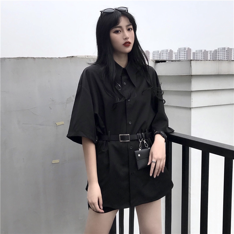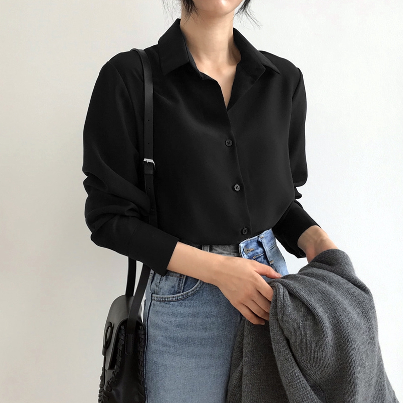 Kemeja Wanita Lengan Panjang Model Longgar Versi Korea Warna Hitam Untuk Musim Semi Shopee Indonesia