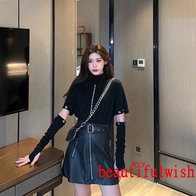 Mu Kaos T Shirt Wanita Lengan Pendek Aksen Ring Metal Warna Hitam Polos Ala Retro Korea Musim Gugur Shopee Indonesia
