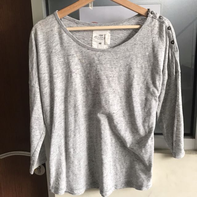 Kaos Lengan Panjang Wanita H M Grey Fesyen Wanita Pakaian Wanita Atasan Di Carousell