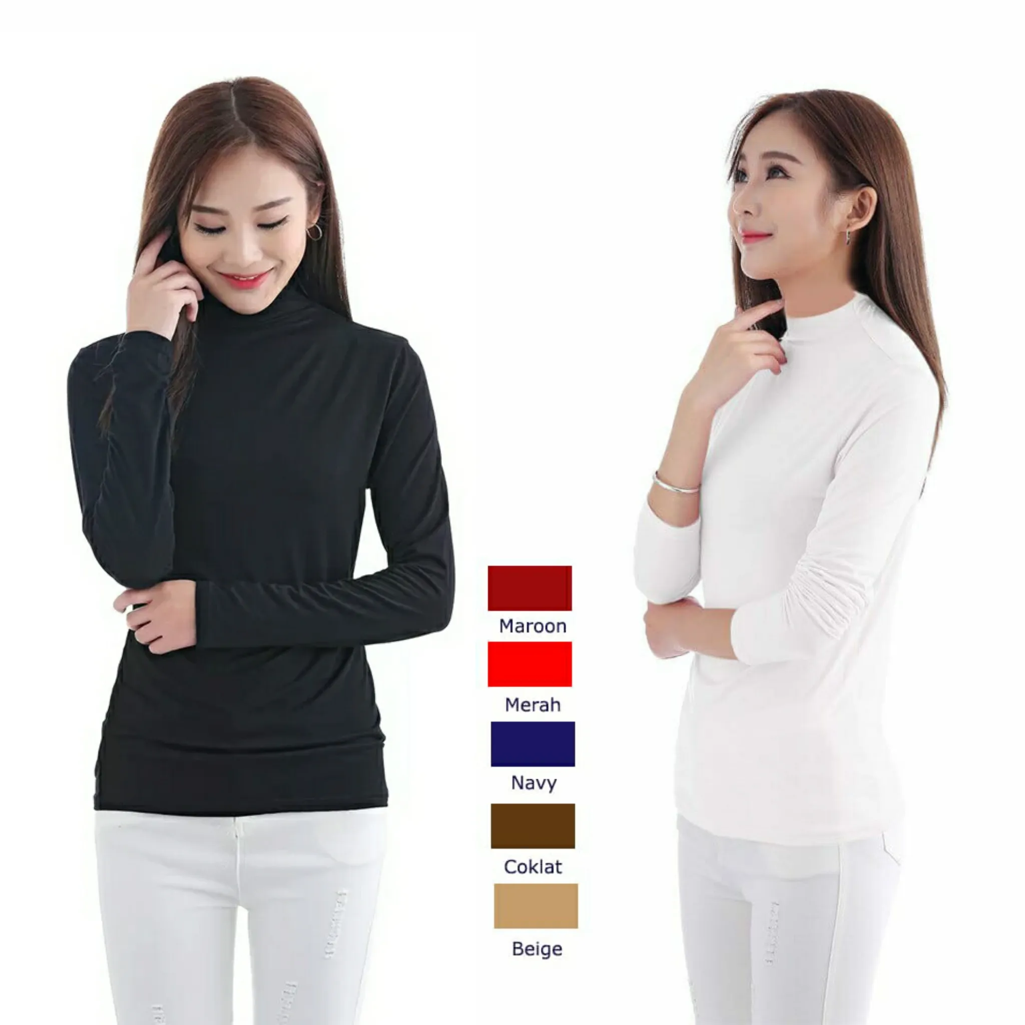 Kaos Blouse Kaos Polos Lengan Panjang Hitam Putih Pink Cream Merah Wanita Elevenia